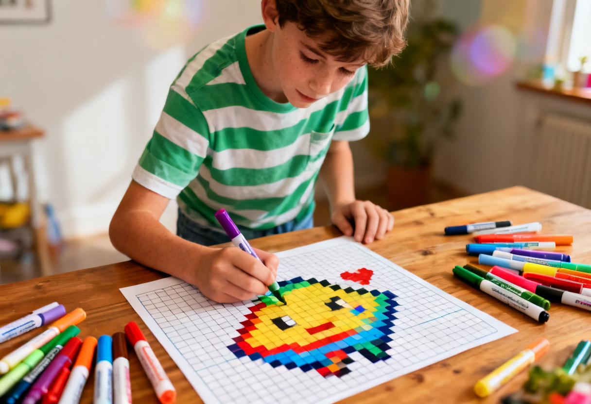 Une des facettes les plus fascinantes du coloriage pixel est la possibilité de créer un lien entre les générations. Devant un dessin, enfants et parents, voire grands-parents, peuvent partager un moment de complicité. En coloriant ensemble, on renforce non seulement des liens familiaux, mais on apprend aussi à apprécier l’art sous un angle différent, riche en couleurs.